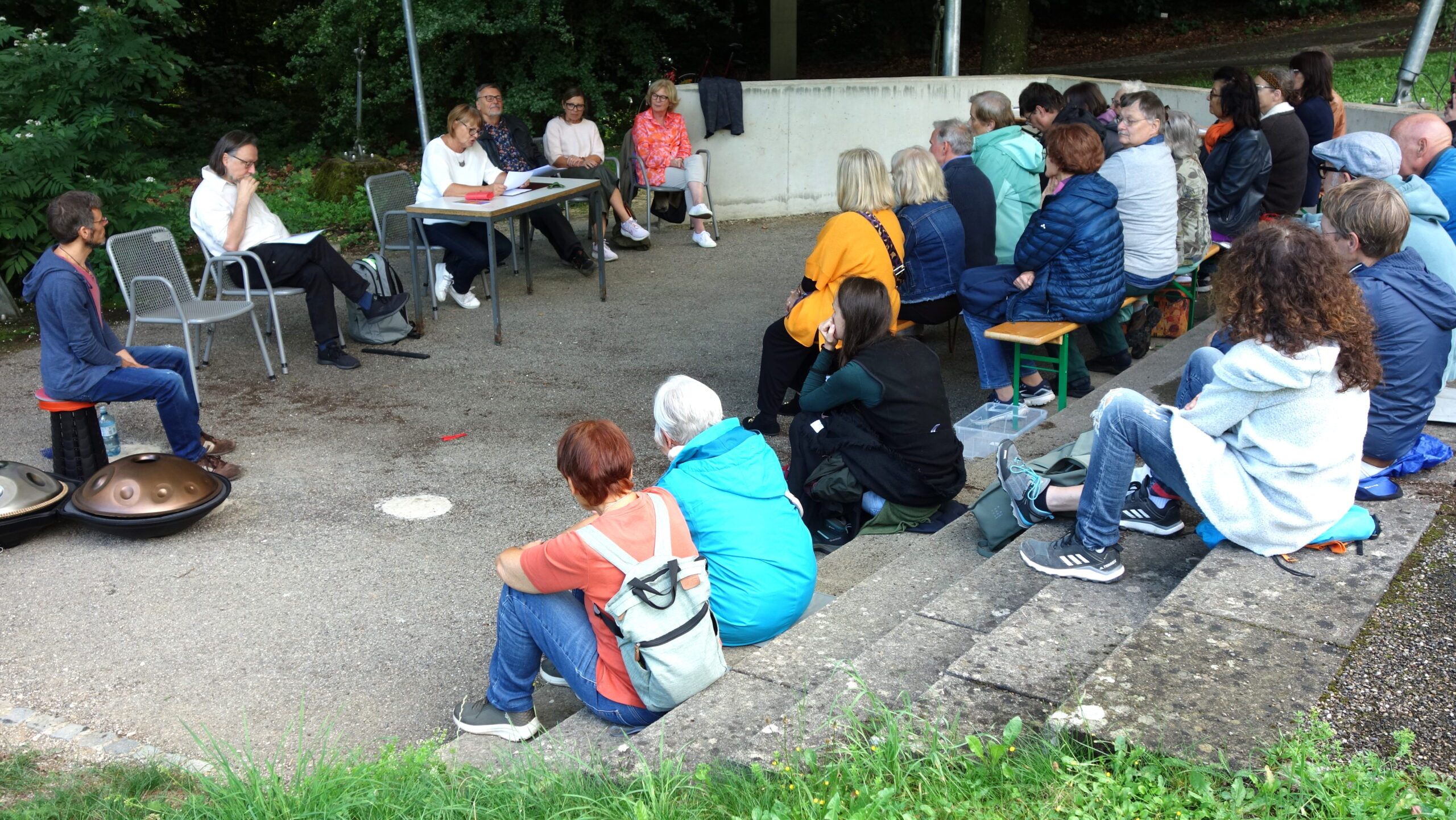 Saschas Handpan begleitete unsere Texte mit warmen, vibrierenden Tönen, die wunderbar mit den Naturgeräuschen harmonisierten.