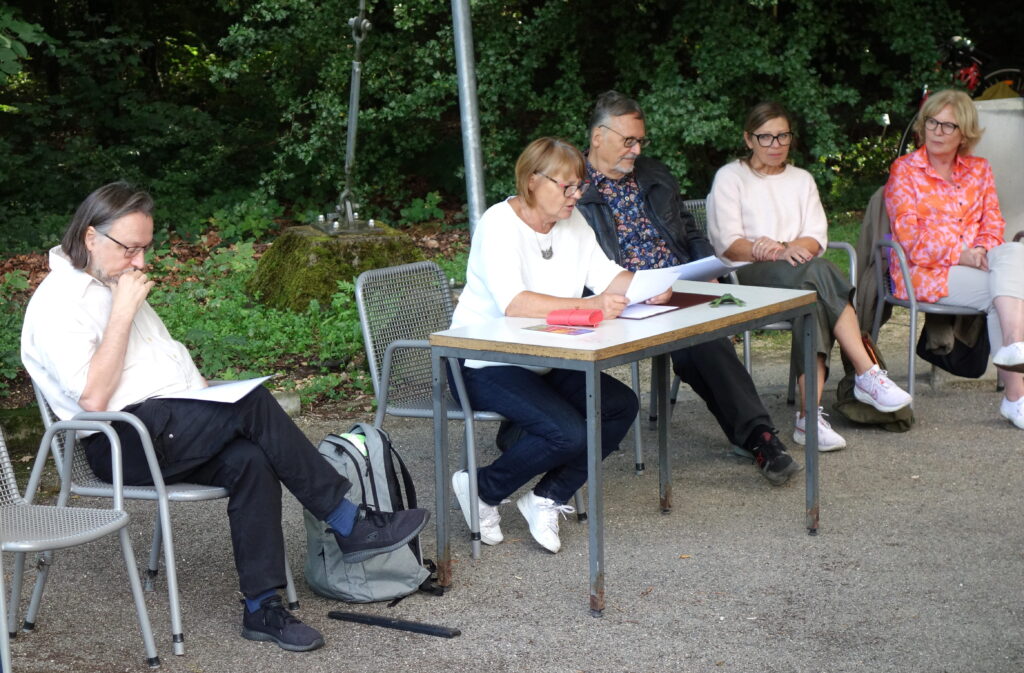 Am Samstag, den 30.08.25 lasen wir sechs (Gerhard, Helmut, Katja, Sabine, Thomas und ich) untern Pavillon des Apothekergartens im Botanischen Gartens der Uni Ulm.