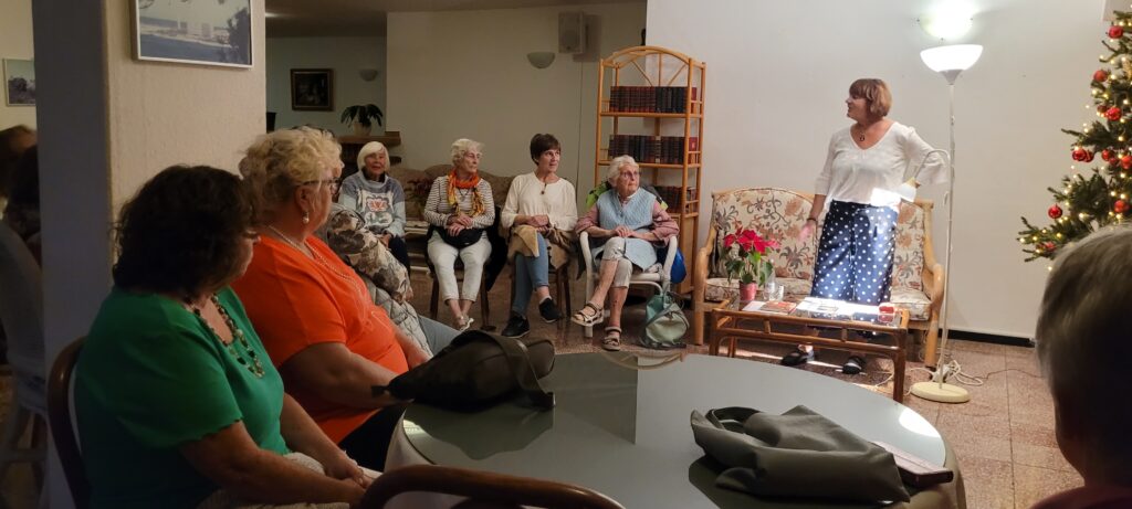 Zum ersten Mal las ich im Ausland😀, und zwar auf Teneriffa. Exakt 25 Zuhörer*innen und ein Hund fanden sich im Salon ein.